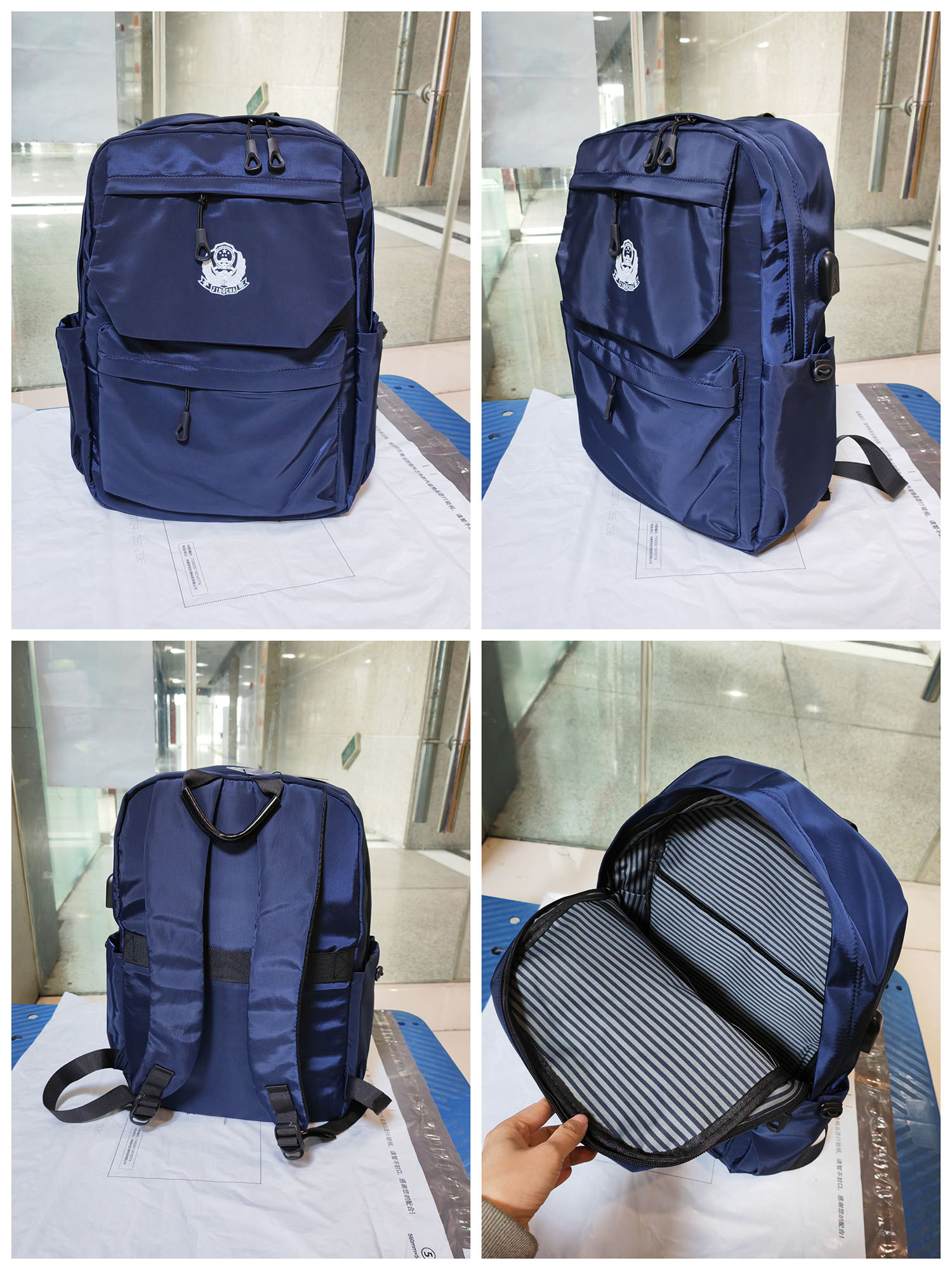 藍(lán)色警用雙肩包(帶USB接口)