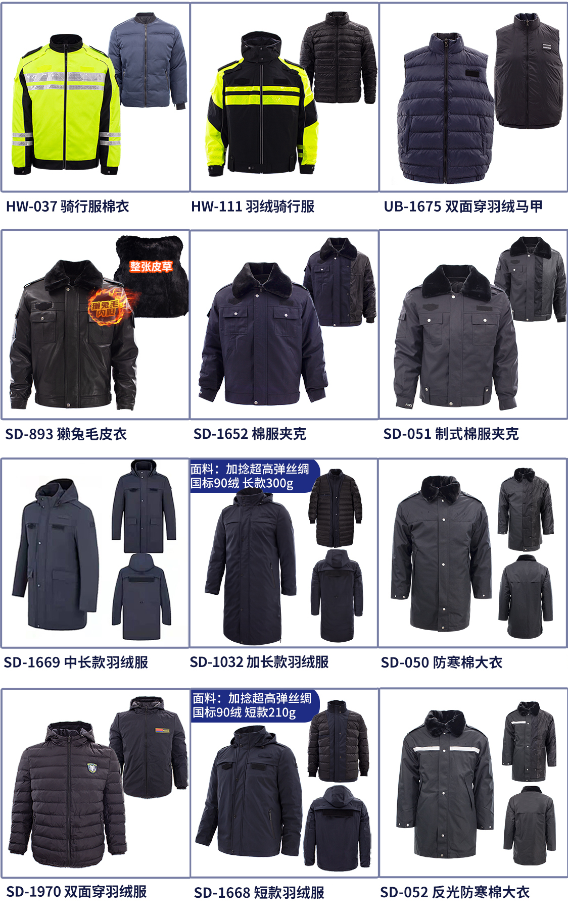 冬季制式服裝棉衣羽絨服外套執(zhí)勤服目錄表