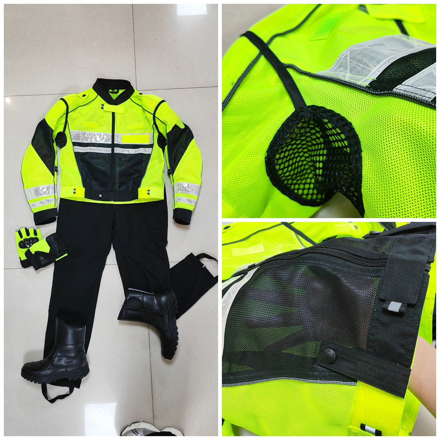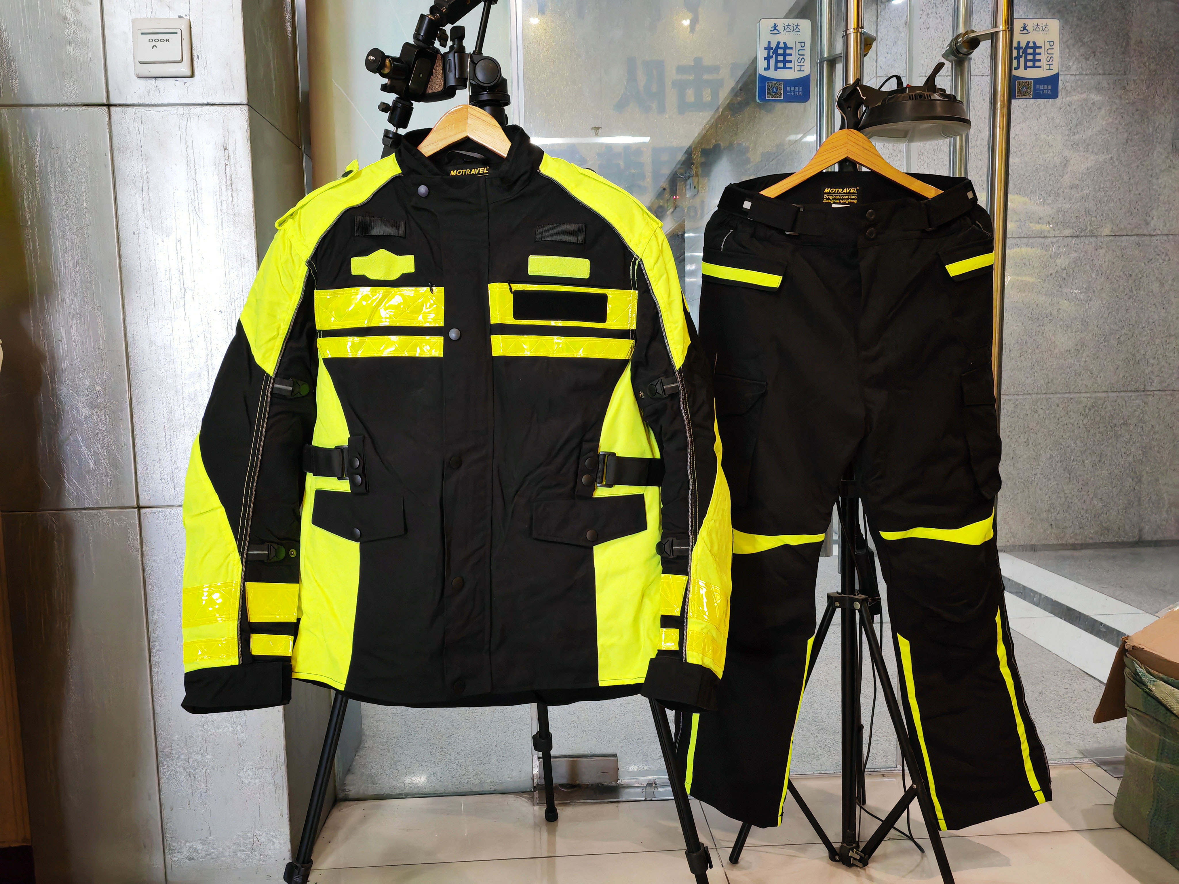 HW-133 春秋黃黑拼色騎行服套裝交警鐵騎服男女同款