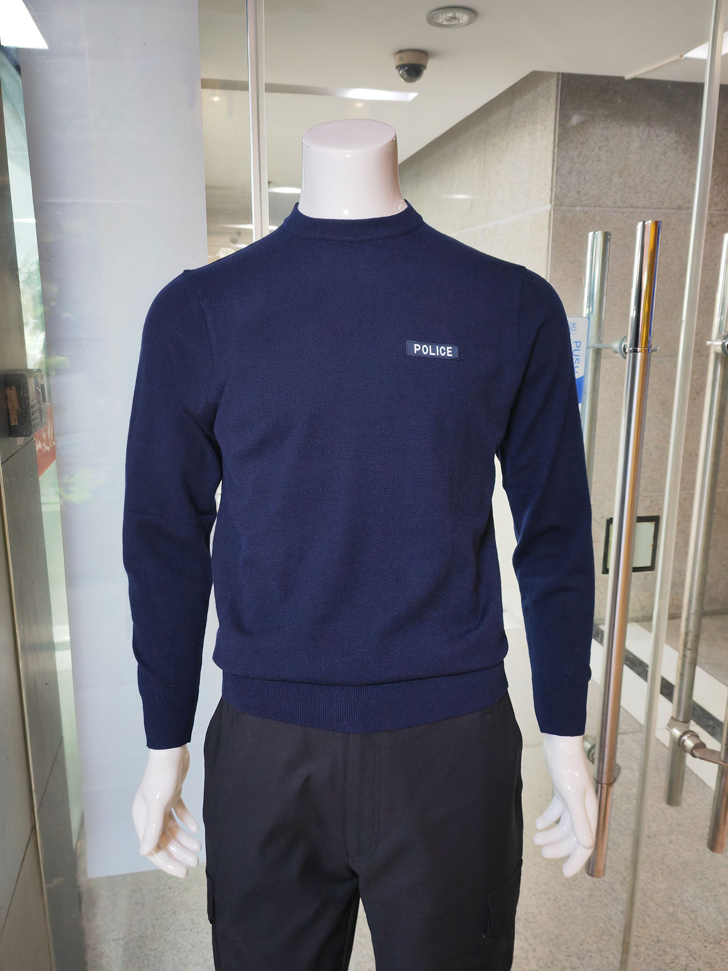 秋冬警服圓領(lǐng)長袖針織T恤衫柔軟親膚羊毛衫